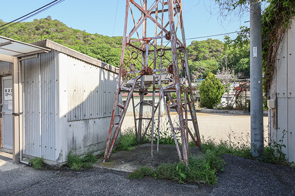 県道262号の大谷川対岸、麻宇那西地区にある公民館の並びに建つ櫓。屋根は四角形で避雷針などの設備や装飾は一切みられない。